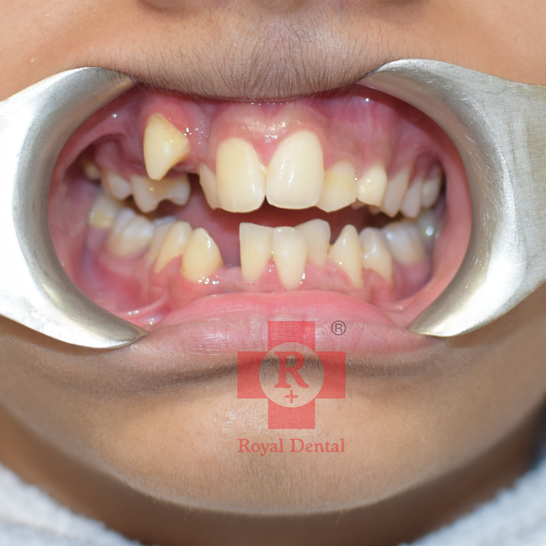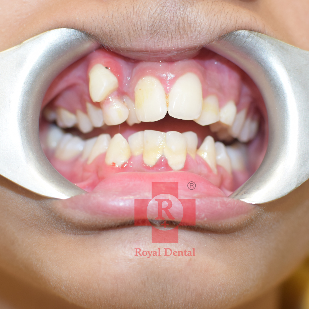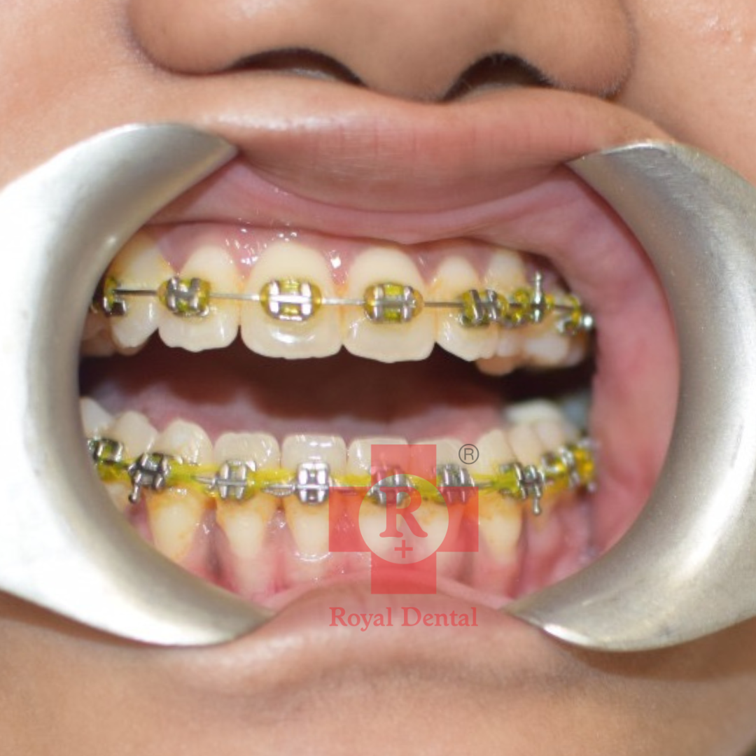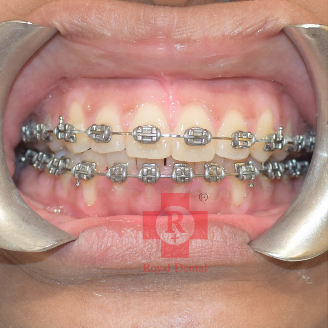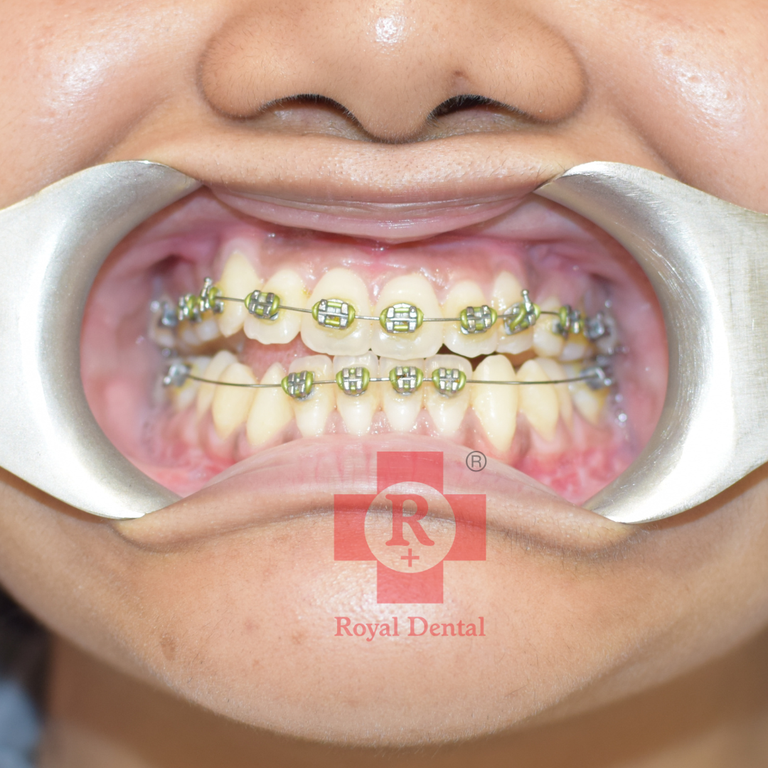 Initial Consultation and Diagnosis: July 2023: The patient presented with a noticeable proclination of the upper front teeth. An orthodontic evaluation confirmed the need for corrective treatment to improve dental alignment and aesthetics. Commencement of Treatment: Braces and wires were placed on the patient’s upper teeth to gradually move them into the desired position. This conventional braces treatment aims to correct the proclination and align the teeth properly. Follow-Up and Expected Outcome: The treatment is ongoing, with regular follow-up appointments to adjust the brackets and wires as needed. With consistent orthodontic adjustments, the patient's upper front teeth are expected to be repositioned to achieve a more aligned and aesthetically pleasing dental arch. The orthodontic treatment involving the placement of brackets and wires was initiated to correct the proclined upper front teeth of the patient. Regular follow-ups and adjustments are essential to ensure the success of the treatment, aiming to improve both the function and appearance of the patient’s teeth.Case Study: 12 Years Old Female Braces Treatment for Proclined Upper Front Teeth
