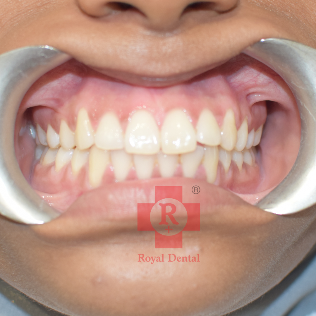 Initial Consultation and Diagnosis: December 2020: The patient presented with misaligned teeth. A thorough orthodontic assessment confirmed the need for corrective treatment to achieve proper dental alignment. Commencement of Treatment: February 2021: Orthodontic brackets and wires were placed on the patient’s teeth to gradually move them into the desired position. This conventional braces treatment aimed to correct the malalignment and enhance both function and aesthetics. Completion of Treatment: August 2022: After approximately 18 months of consistent orthodontic adjustments, the treatment was successfully completed. The braces were removed, revealing well-aligned teeth. Post-Treatment Care: Retainers were provided to the patient to maintain the new position of the teeth and prevent any relapse. The patient and her guardians were instructed on the importance of wearing the retainers as directed.Case Study: 12 Years Old Female Orthodontic Treatment for Misaligned Teeth